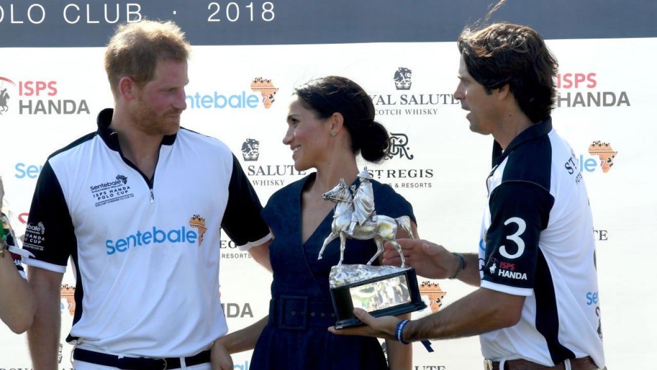 That was polo star Nacho Figueras’ solution when he found himself alongside Prince Harry and his wife, Meghan Markle, during the trophy ceremony following the Sentebale ISPS Handa Polo Cup at the Royal County Berkshire Polo Club on Thursday. Markle presented the trophy to the winning team, which happened to be Harry’s. However, after handing off the prize, Markle and her new hubby shared a passionate kiss, leaving Figueras awkwardly standing nearby in subsequent photos.