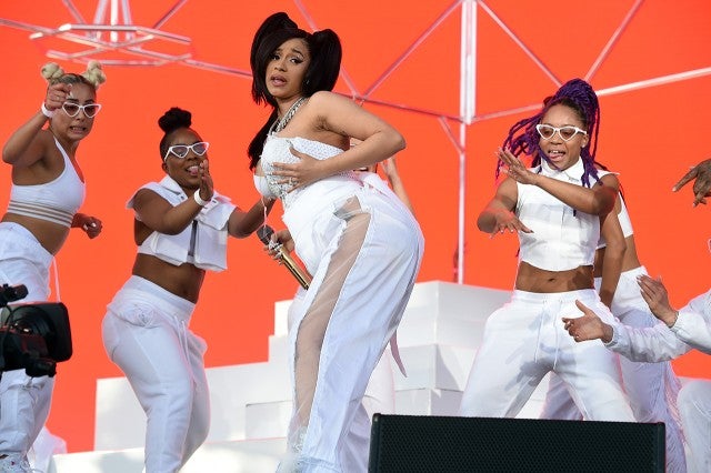 Rocking pigtails and lots of bling, the "Bodak Yellow" artist danced, twerked and even pelvic thrusted onstage to the delight of concertgoers. The performance also featured cameos from Chance the Rapper, G-Easy, and Kehlani, who are also featured on Cardi's new album, Invasion of Privacy.