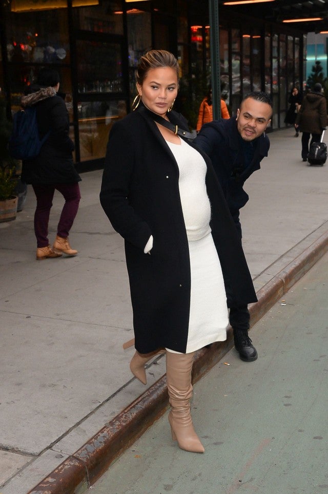 The 32-year-old model, who is expecting her second child, a baby boy, with husband John Legend, was spotted out and about in New York City on Monday, walking around Soho. While she looked incredibly chic (as always!), what caught the attention of fans was the man who seemed to be trying to flag her down.