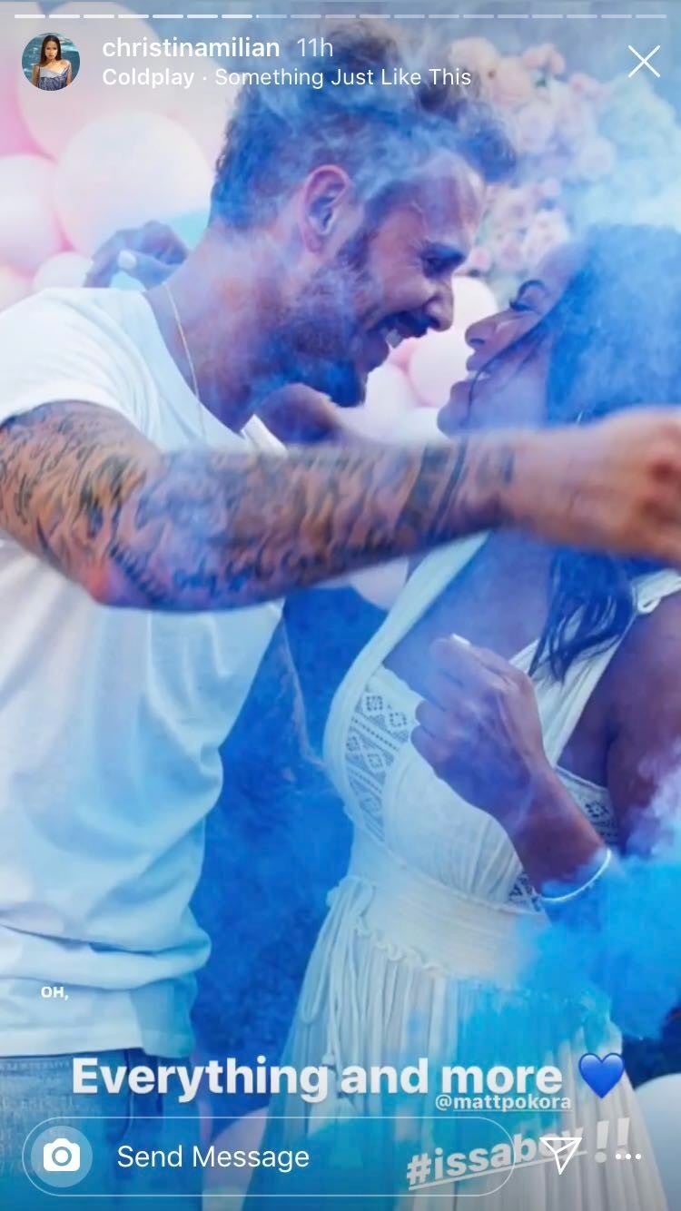 "Oh B??Y we’re above and beyond Cloud 9!! ?????? #grateful #itsaboy," Milian captioned the cute pics.