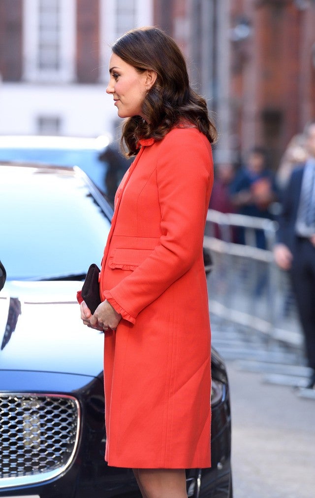 Three months ahead of her due date, Kate is keeping busy. Earlier this week, Kate and Prince William visited Coventry, England, for a day of events. Later this month the couple is traveling abroad on their Royal Tour of Sweden and Norway.