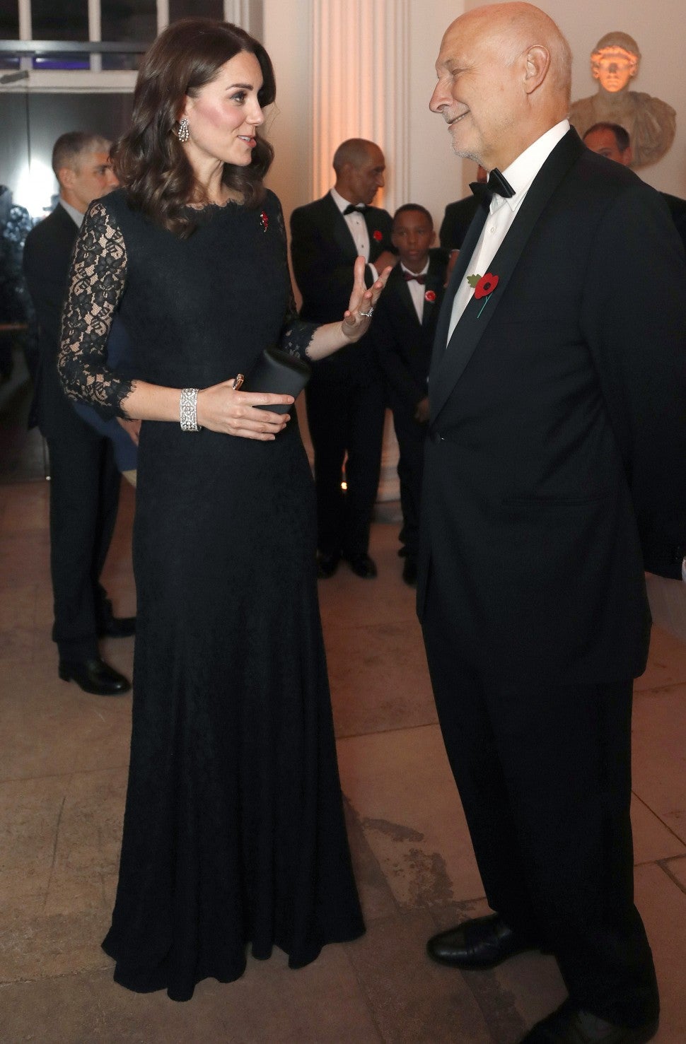 The expecting royal stunned in a black lace Diane von Furstenberg gown at the 2017 Gala Dinner for The Anna Freud National Centre for Children and Families at Kensington Palace on Tuesday.