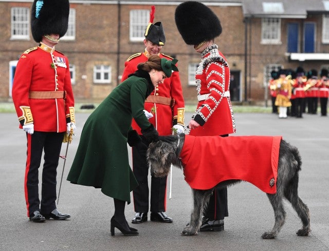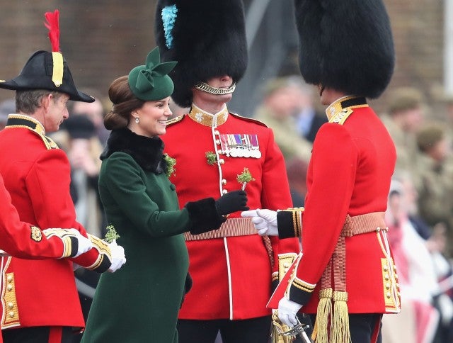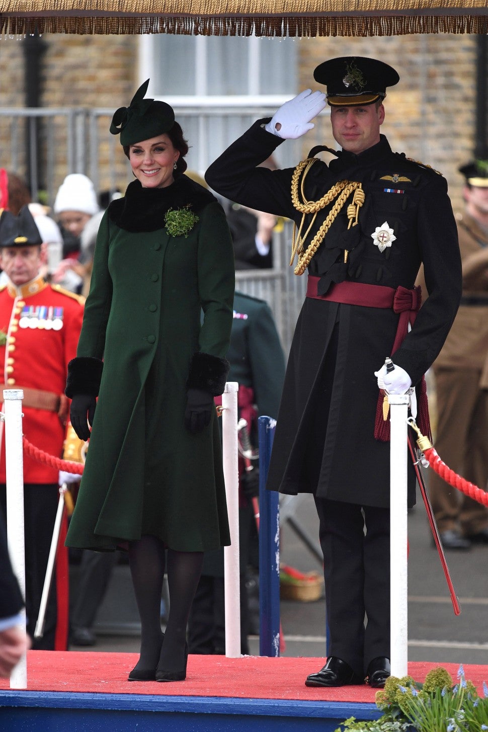 The 35-year-old royal and her husband, Prince William, made their annual appearance at the St. Patrick's Day parade in Hounslow, west London, on Saturday, where they visited the 1st Battalion Irish Guards, of which William is a colonel.