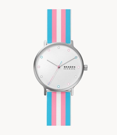 Skagen has designed two limited-edition styles of their bestselling Aaren watch, inspired by the Pride flag and Transgender flag. Skagen will donate a minimum of $25,000 to InterPride.