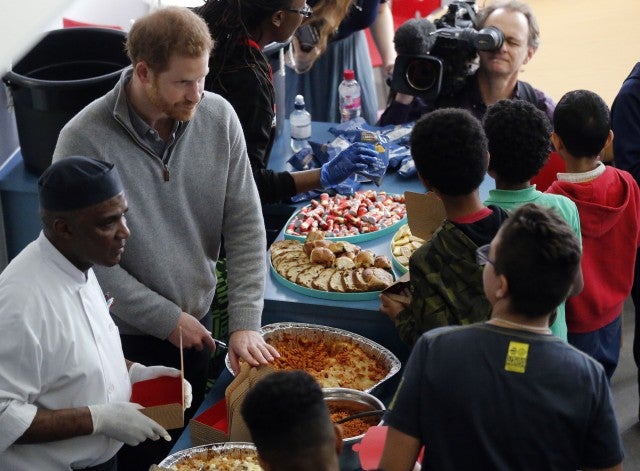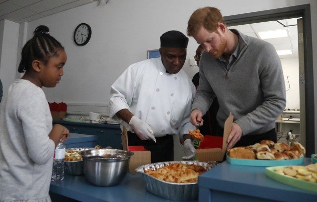 On Thursday, the 33-year-old royal helped serve food to school children at the Roundwood Youth Center in London for the Fit and Fed campaign, an initiative that aims to tackle hunger, inactivity and isolation during school holidays. Harry, clad in a gray sweater and black pants, helped dish up pasta, while clearly enjoying meeting a few of the children and the volunteers in the kitchen.