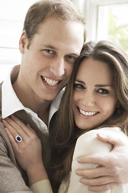 The romantic image is pretty similar to a pic the Duke and Duchess of Cambridge posed for during their engagement photo shoot with Mario Testino. Like Meghan, Kate wore a light-colored sweater and put her ring -- which once belonged to Harry and William's mother, Princess Diana -- on display as she hugged the royal.