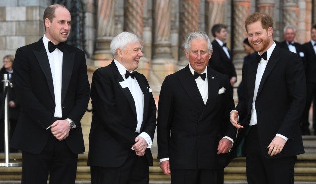 On Thursday evening, Prince Charles joined his two sons, Prince William and Prince Harry, at the premiere of Our Planet at the Natural History Museum in London, England. The trio looked very dapper in their tuxedos and posed for photos in front of the steps of the venue with acclaimed natural historian Sir David Attenborough, who narrated the eight-part documentary series for Netflix.