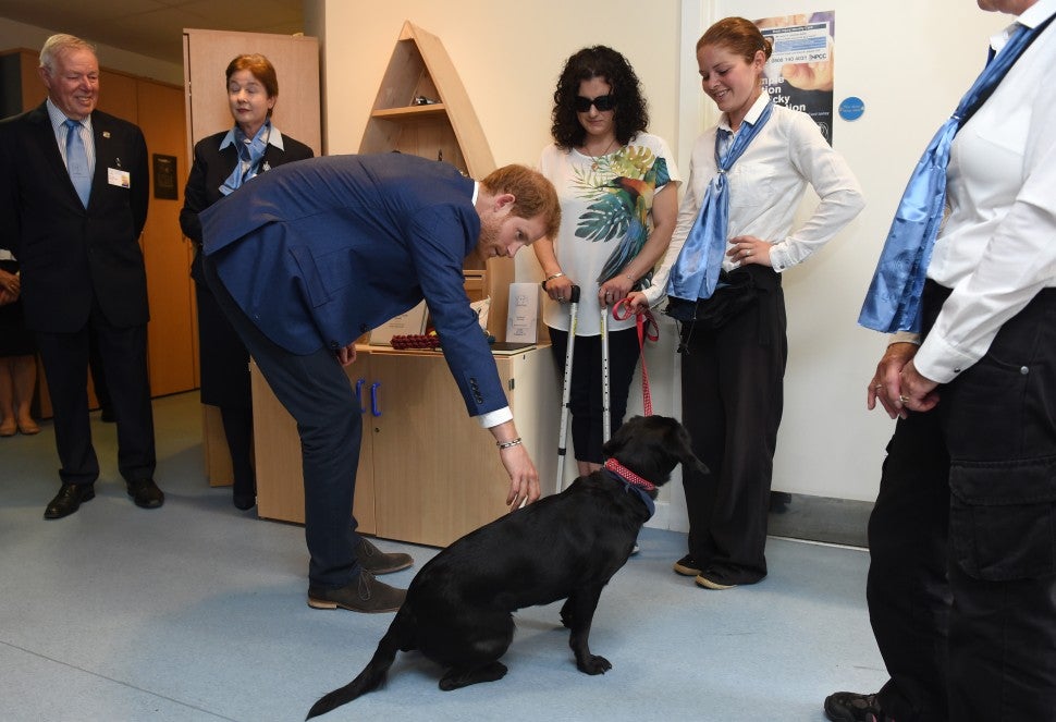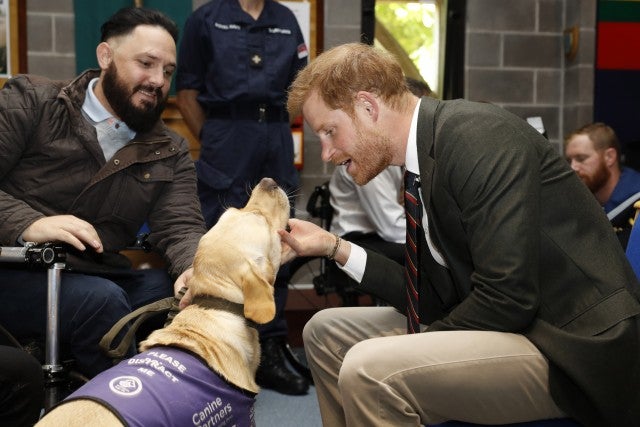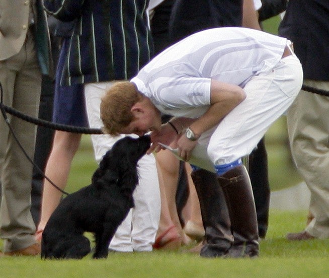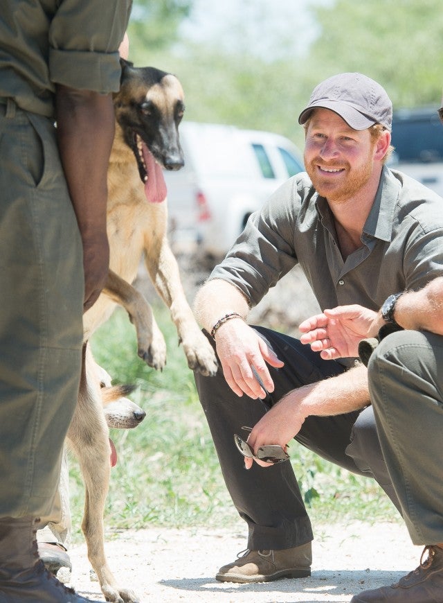 Since 2017, Harry has been photographed with many pups, even greeting a pair of dogs with Meghan Markle!