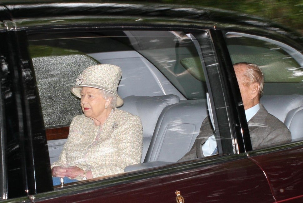 The 97-year-old Duke of Edinburgh wore a gray suit and blue tie while riding beside the queen in the royal Bentley as they headed to Crathie Kirk, a small church located on the Balmoral estate, where they are living. The beloved matriarch wore an ivory dress with a matching hat for the morning service.