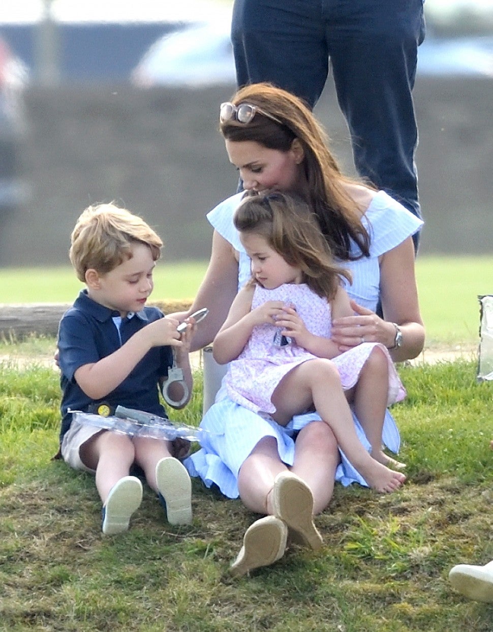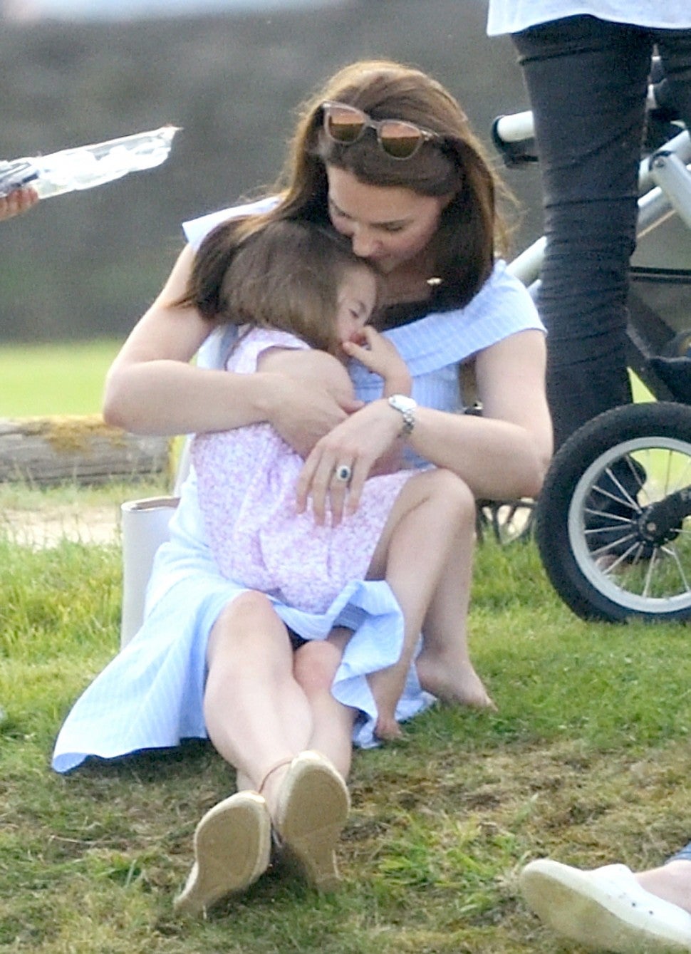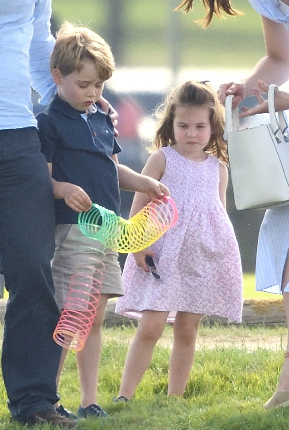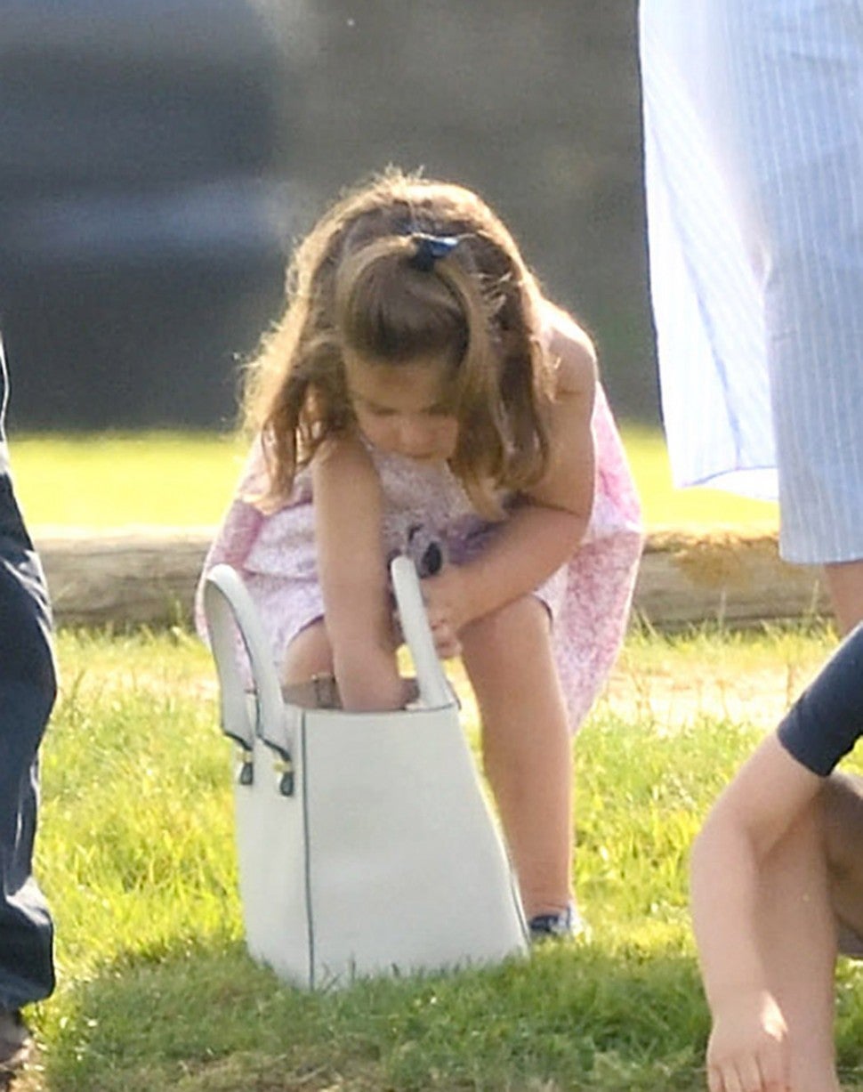 Charlotte can make her own fun, too. She was seen digging through mom Kate's purse, holding a polo mallet and frolicking in the grass.