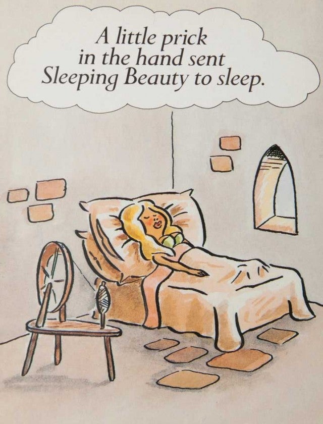 The cover of the R-rated birthday missive features a cartoon illustration of Sleeping Beauty napping in her bed, in a castle, with the joke set-up, "A little prick in the hand sent Sleeping Beauty to sleep."