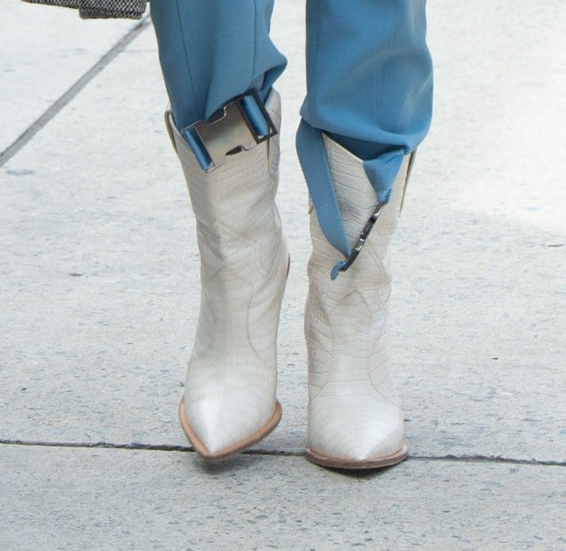 The actress sported this season's coolest boots in the most unexpected way.