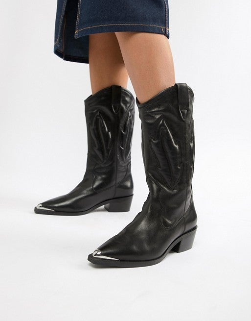 ASOS Design Caleb Leather Western Knee Boots $135