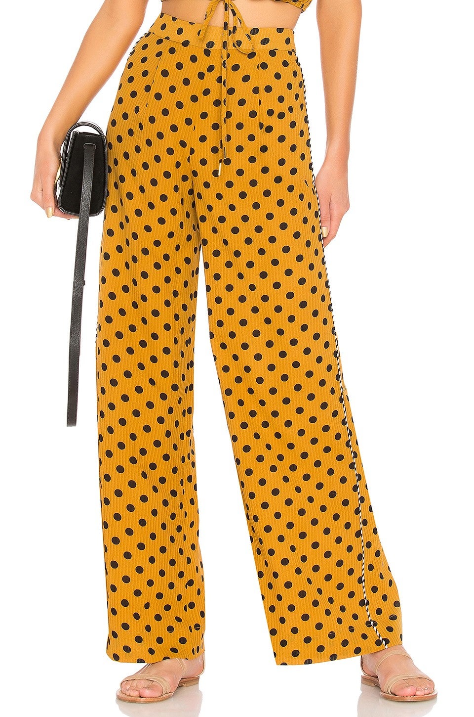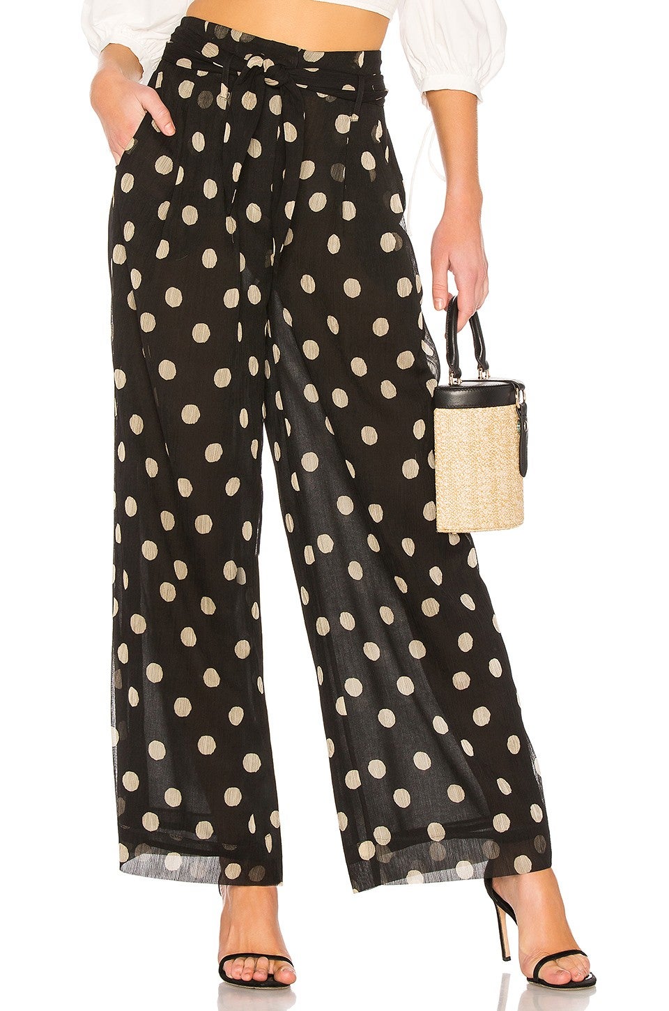Copy the gorgeous brunette's trendy outfit by scoring a polka dot pant for yourself. Team with basics like the actress did or if you're feeling real adventurous, sport it with a bold color or mix with another dotted number. Shop our edit ahead.