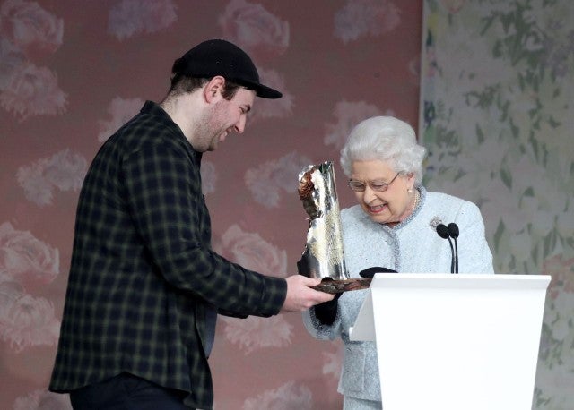 The monarch's appearance at the event was a surprise, so you can imagine how stoked Quinn must have been when she took the stage to present him with the first-ever Queen Elizabeth II Award for British Design.