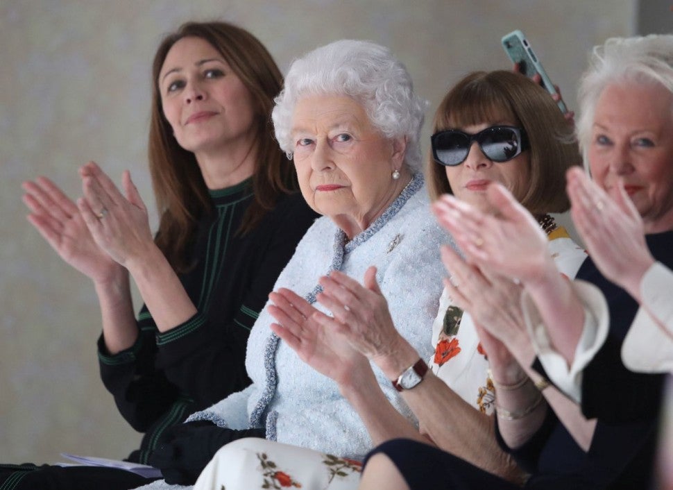 The 91-year-old royal watched Richard Quinn's runway show with Anna Wintour by her side.
