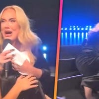 Adele gets emotional while helping two fans announce the sex of their baby during her Las Vegas residency concert.