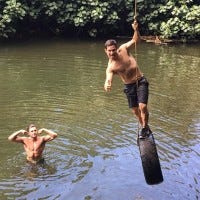 Zac Efron and Adam Devine go tire swinging in Hawaii while filming their upcoming comedy, Mike and Dave Need Wedding Dates.