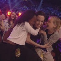 Jolie brought Zahara and Shiloh to Nickelodeon's awards show Saturday in Los Angeles, and they gave mom big hugs as she took the stage and told kids to be dare to be "different."