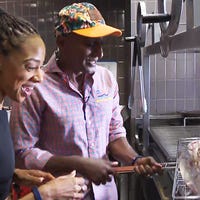 ET’s Nischelle Turner gets a cooking lesson from chef Marcus Samuelsson at Baha Mar Resort.