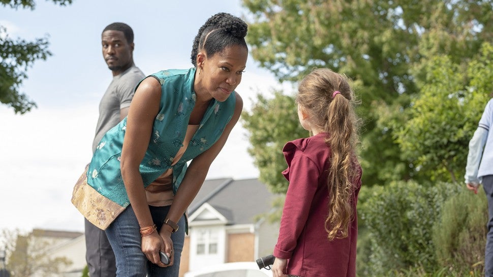 "When Damon sent me the pilot script, there was an envelope tucked in a certain page so I, like anybody, went to that page and on the envelope it said, 'Regina do not open this until you get to this page. Don't cheat.' That just makes me want to cheat, but I didn't so I put it back in and I read ...It's the page that introduces Sister Night, and so I opened the envelope and it was an artist rendering of me in the costume and I got chills," she remembered. "We just went from there sending videos to [director] Nicole [Kassell] as I would do different fittings... and we landed with this badass costume. When I sent my son the picture, he was like 'Yo, mom!' So, I'm officially a cool mom now."