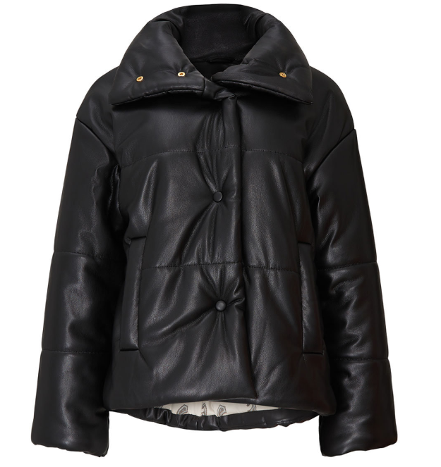 A faux leather puffer that's practical and stylish. No marshmallow vibes here.