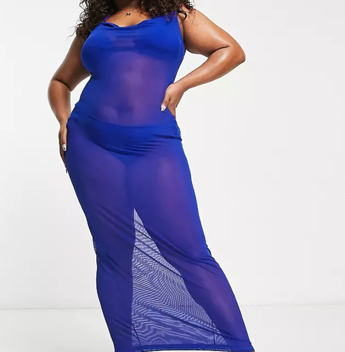 South Beach Curve Exclusive Maxi Mesh Beach Dress