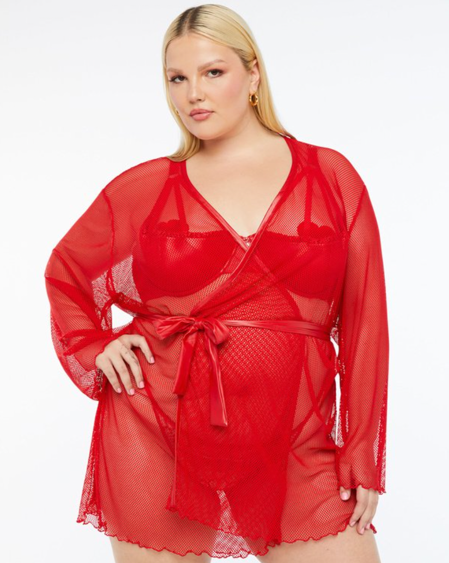 Slip into something a little sleeker this Valentine's Day with this romantic red, fishnet robe.