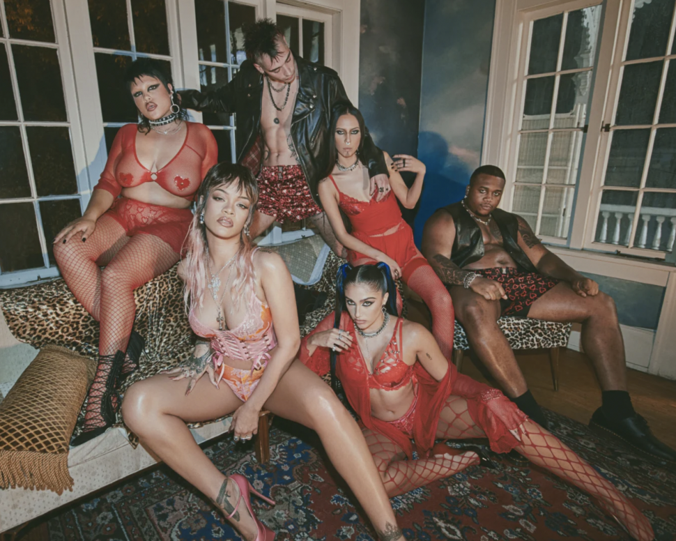 The Savage X Fenty 2022 Valentine's Day collection debuted via a star-studded campaign called "Love on the Edge" -- a presumed nod to the singer's 2016 hit, "Love on the Brain" -- and featured Rihanna posing in Savage X Fenty pieces alongside other models including Lourdes Leon, Tess McMillan, Quannah Chasinghorse, Souizz, Alva Claire, Shugga, Sarah Kim, Evan Leff and Nyja.