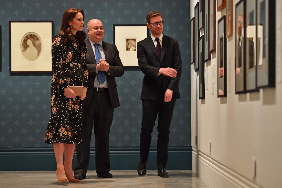 The following day, she visited the National Portrait Gallery in London, where she unveiled her Patron's Trail of the exhibition, Victorian Giants: The Birth of Art Photography. The queen-to-be was elegantly dressed in a black floral frock by Orla Kiely, which she paired with blush suede heels, a Kiki McDonough amethyst and pink tourmaline earrings and a blush Jimmy Choo clutch.