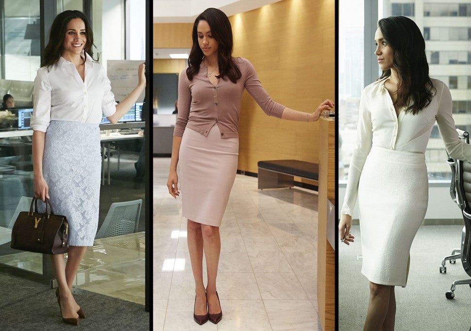 "The fashion on Suits is gorgeous, so it also became my education of designers and really knowing what fits my body well," Meghan marveled in an interview with Glamour UK. "Rachel's clothes reflect how she's feeling, because that's what happens in real life, right? When she and Michael Ross [Patrick Adams] were falling in love, everything was a blush tone and it was creams and layers and she was happier. And when she was really stressed, everything was darker and there were slate and black tones. At the very beginning, she wore a lot of black, because I think that's what happens when you're younger and you want to be taken seriously -- and then you lighten up, and your clothes reflect that."
