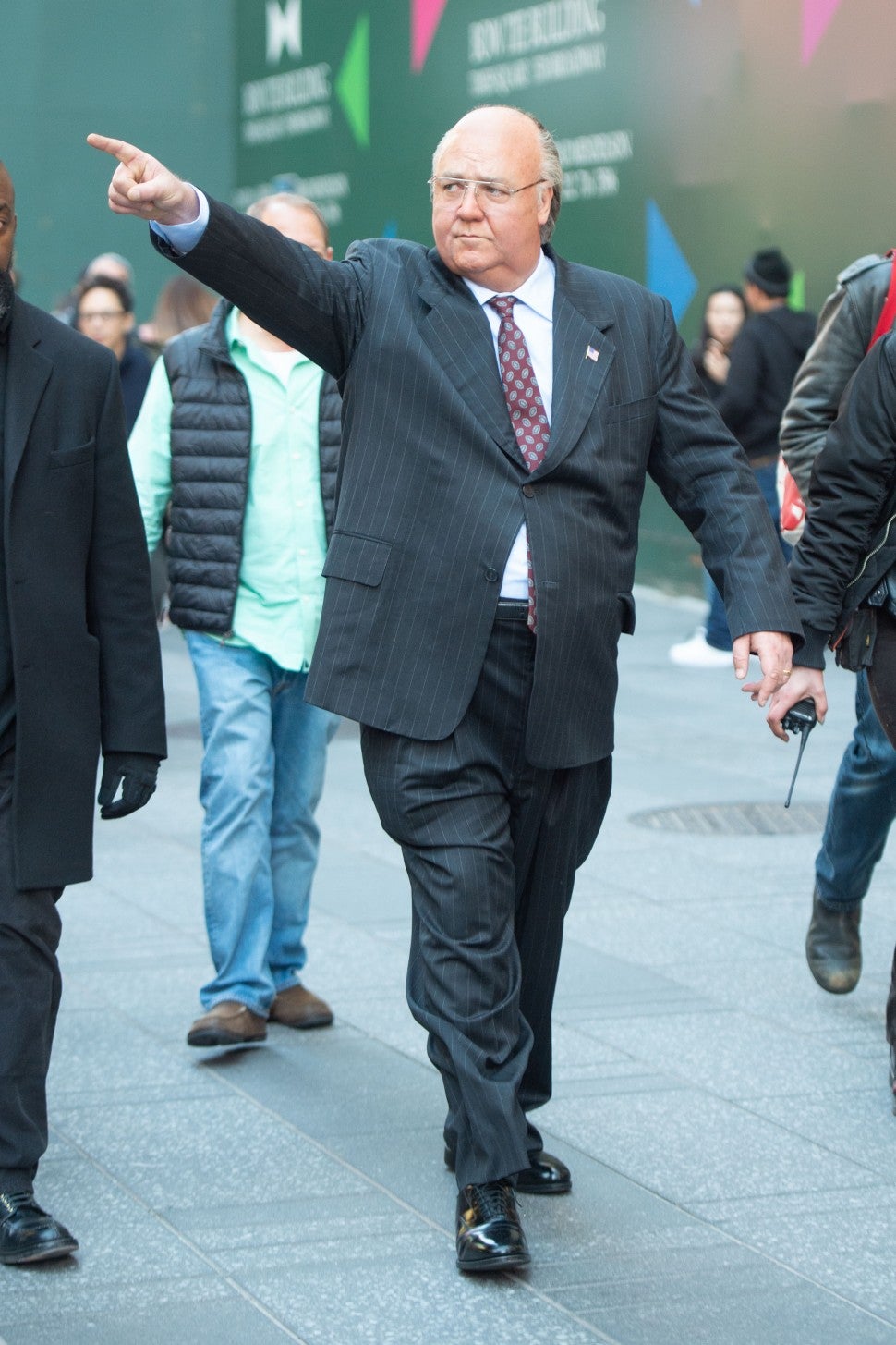 The 54-year-old actor was spotted dressed as the late Fox News CEO Roger Ailes on the set of his upcoming Showtime miniseries in New York City on Thursday.