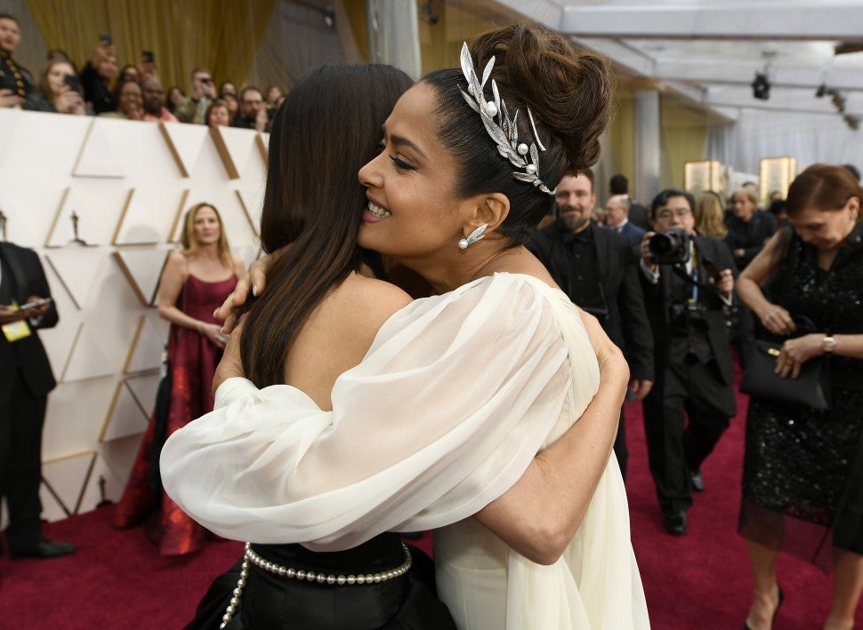 While walking the carpet, Hayek ran into fellow actress Penelope Cruz and the two shared a sweet moment and warm embrace.