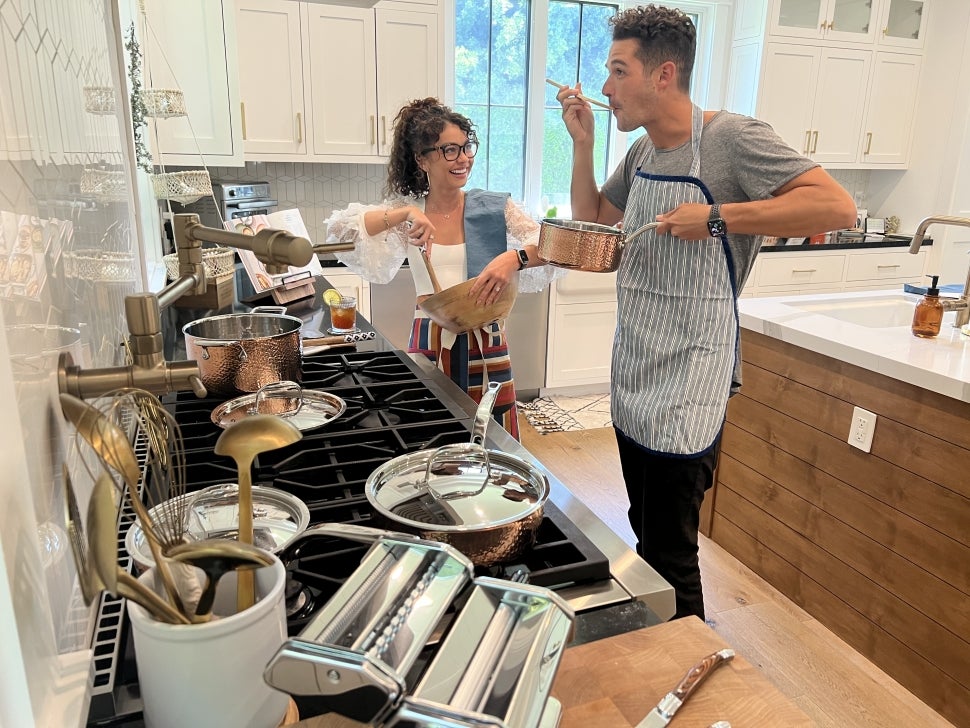 This 10-in-1 stand mixer that kneads dough, mixes batter, whips cream, beats eggs, and so much more is well worth the investment and features interchangeable attachments and 10 speed settings for all your cooking and baking needs. Hyland and Adams went for white, but this model comes in a rainbow of colors to suit your style.