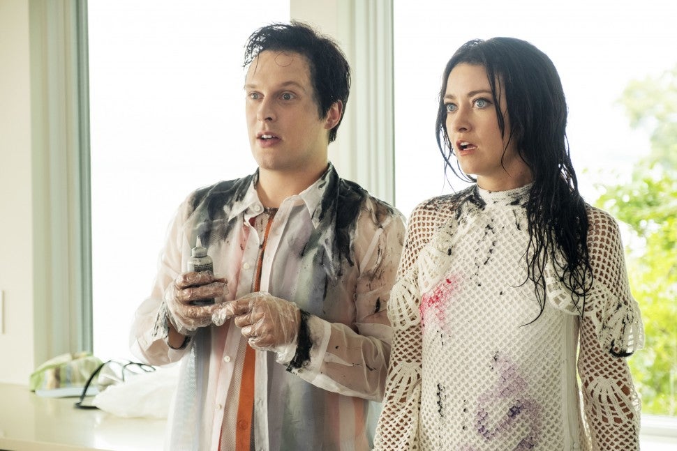When it comes to fleeing, Portia follows Elliott to the Hamptons where any really sound decision falls prey to fear. “That scene was so deeply funny because the idea that they would be like, ‘If we dye our hair black and just go to the center of a body of water, we’re safe,’” Hagner says, adding that the water was freezing and they were stuck in it for hours while filming the pair’s collective breakdown.