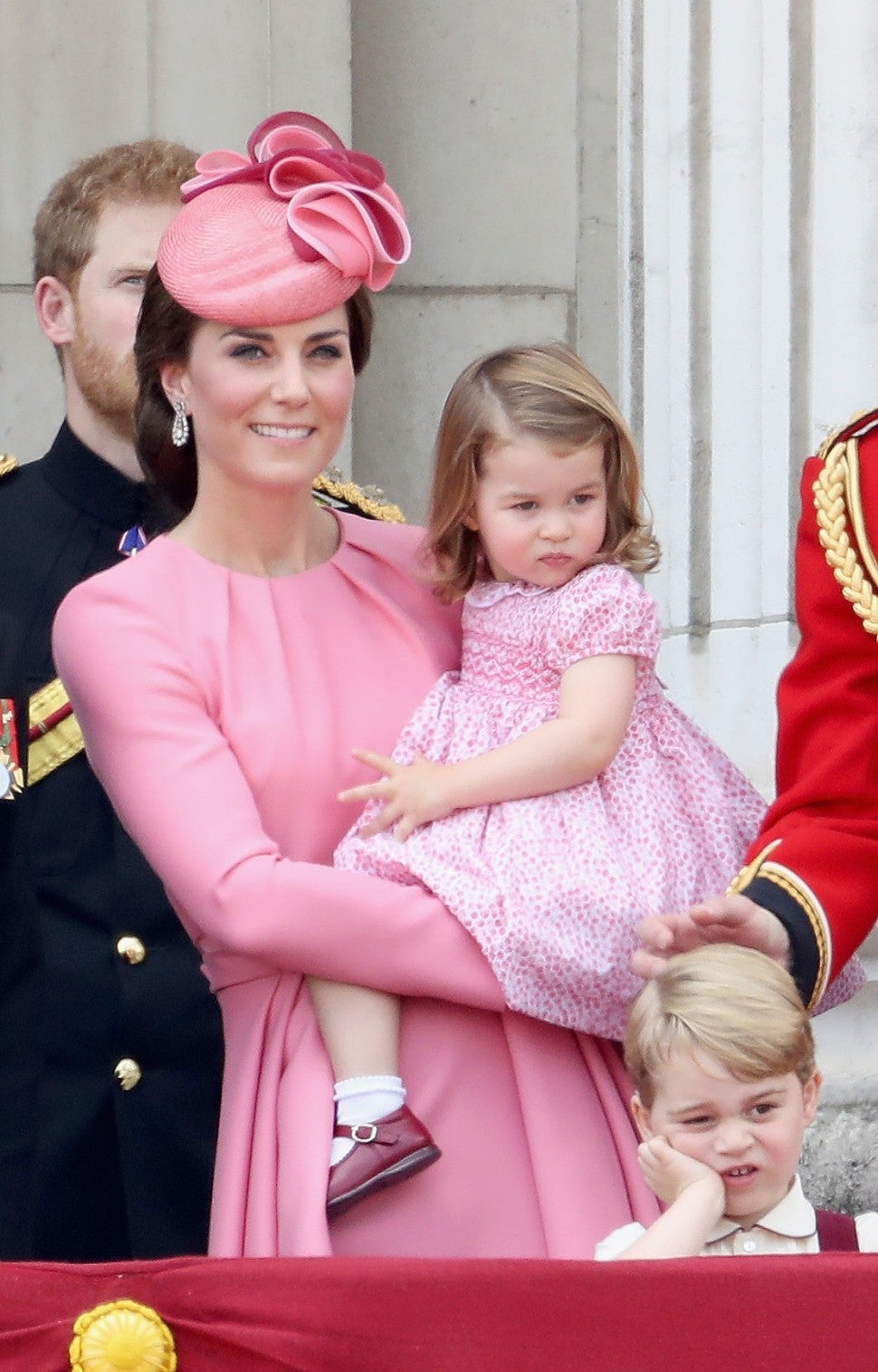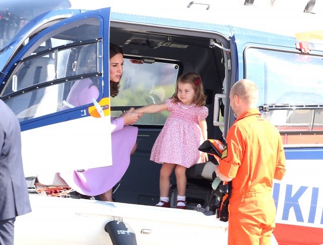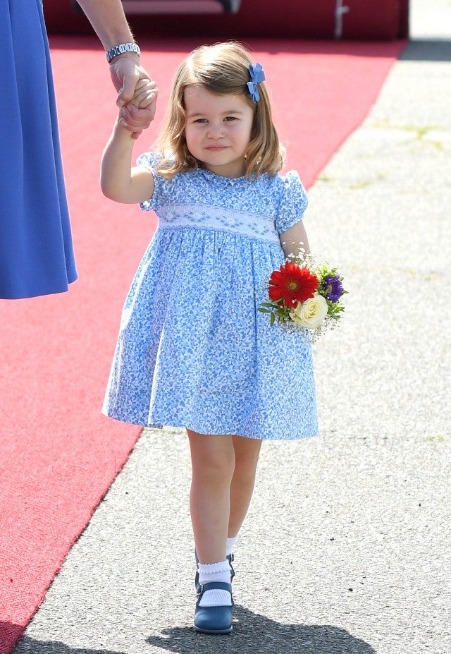 A babydoll dress with puffed shoulders and smocking is a staple in the little princess' closet. Charlotte was seen in a red printed version in July 2017 along with red buckled shoes as she rode a helicopter with her mom in Hamberg, Germany. About a month prior, the 3-year-old royal wore the same outfit during Trooping the Colour in June.