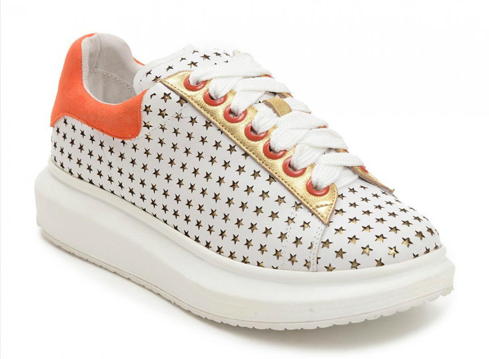 And if you're still not sold on this trend, Hollie Watman's Star Gazing sneaker ($268) in white and orange is a playful take on a classic tennis shoe.