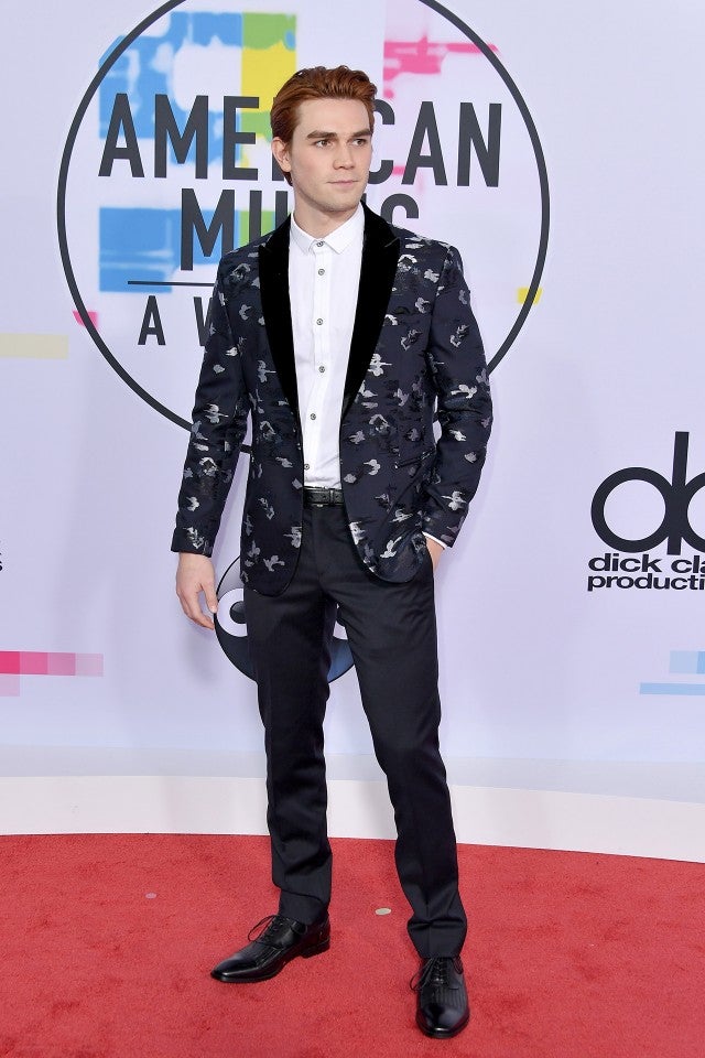 Though it’s normally Betty and Veronica rocking Riverdale with their chic styles, on Sunday it was Archie himself who brought his A-game. The red headed CW star, 20, was a total hunk in his navy jacket with a silver camo print and matching navy pants. Eat your heart out, Archie Andrews!