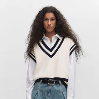 A striped sweater vest to infuse your fall wardrobe with classic preppy style.