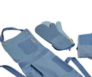Save when you bundle the Home Cook Apron, Double Dish Towels, and Hot Mitt — available in blue salt, lavender and sage.
