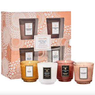 This Voluspa set is a candle lover's dream with four heavenly-smelling votives: Baltic Amber, Cinnamon Woods, Forbidden Fig and Tahitian Coconut Vanilla.