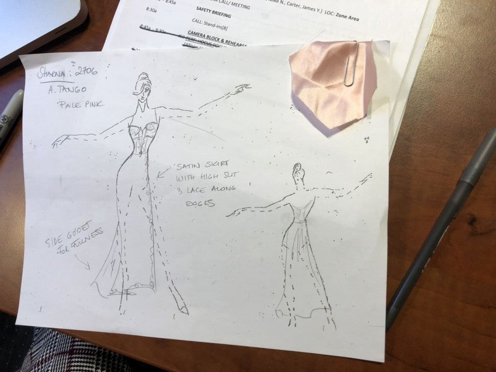 "So if it's a nightgown, I'm thinking it should definitely be lacy and soft," Sharna says. "Not overly sexy, vampy, but definitely a sexiness and a softness to it."