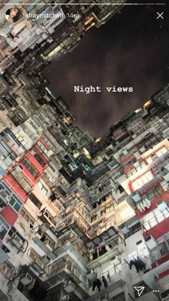 The image comes a couple of days after Stylecaster called out the star for sharing photos taken from other sources without providing credit. One photo in particular, posted to Mitchell's Instagram story, featured a stunning snap of Hong Kong's historic Monster Building, alongside the caption, "Night views." It was here that the fashion and entertainment website noticed a telling computer cursor in the lower left side of the shot.
