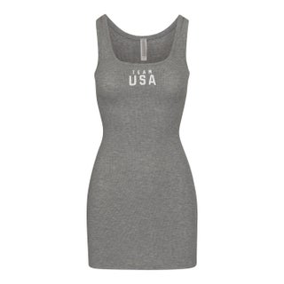 For the SKIMS Team USA Collection, six female athletes don the SKIMS-designed official Team USA loungewear. In our opinion, all the official Team USA merch looks super comfortable and lightweight. And while the SKIMS for Team USA Collection probably won't help you win a gold medal anytime soon, you can channel your favorite athlete's go-to athleisure look by wearing an Olympic Capsule Cozy Knit Robe or a Paralympic Capsule Rib Scoop Tank.