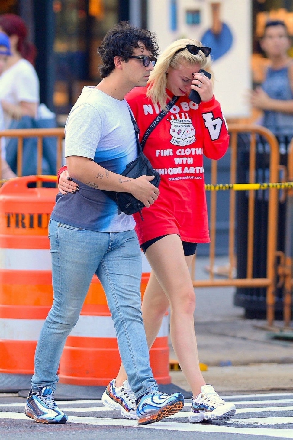 In images snapped on Joe’s 29th birthday on Wednesday, Sophie is seen walking around NYC with her head in her hands, clearly upset and visibly crying while holding onto the singer.