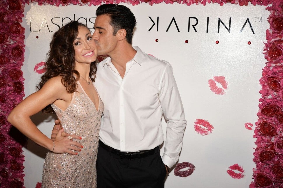Karina Smirnoff got a little love from fellow Dancing With the Stars alum Gilles Marini on the red carpet for the launch of her Karina Collection with LASplash Cosmetics, produced by Pop Your Shop and Just Leverage, at the Sofitel Los Angeles in Beverly Hills on Aug. 21.