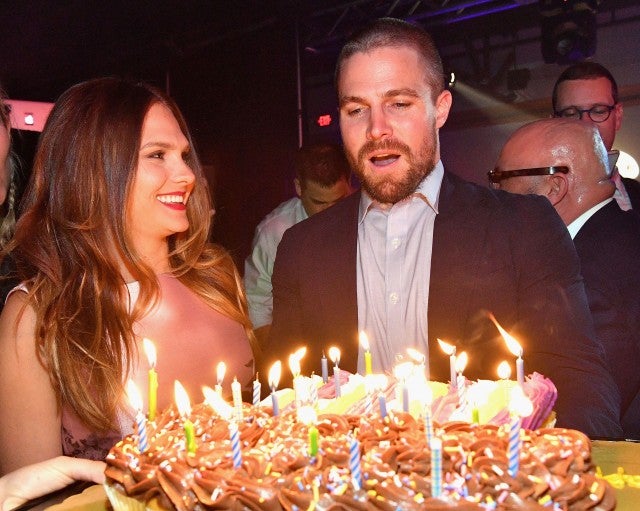 With wife Cassandra Jean by his side, Stephen Amell got surprised during Kentucky Derby weekend with an early birthday cake during the 8th Annual Fillies & Stallions Party, hosted by Patron and Black Rock Thoroughbreds, at Mellwood Arts & Entertainment Center. The Arrow star officially turned 37 on May 8.