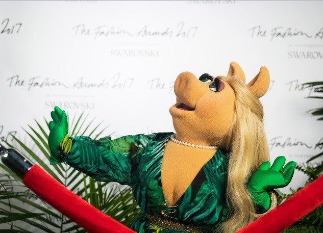 Miss Piggy was unveiled as the Swarovski red carpet presenter for the 2017 Fashion Awards 2017, which will take place in London, England, on Dec. 4. She even donned a replica of Jennifer Lopez's iconic green Versace dress for the big announcement!