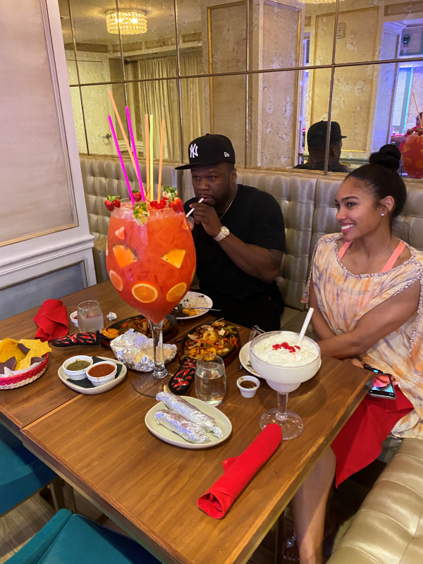 50 Cent was spotted celebrating the new year over lunch at El Dorado 305 in Miami's South Beach with his girlfriend, Jamira Haines, on Jan. 1. in Miami. The pair shared the restaurant's signature giant Tropical Jungle Juice drink and ate mixed fajitas.