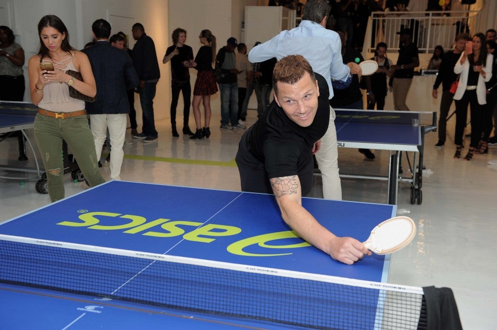 Former hockey pro Sean Avery and his wife, model Hilary Rhoda, rocked the ping-pong table at the ASICS Open party on New York City’s Mulberry Street on Aug. 25. The soiree, which included immersive art installations, an oversized ball pit and specialty cocktails from Deep Eddy Vodka, Sailor Jerry Rum and Casa Noble Tequila, celebrated the kick-off to U.S. Open week.